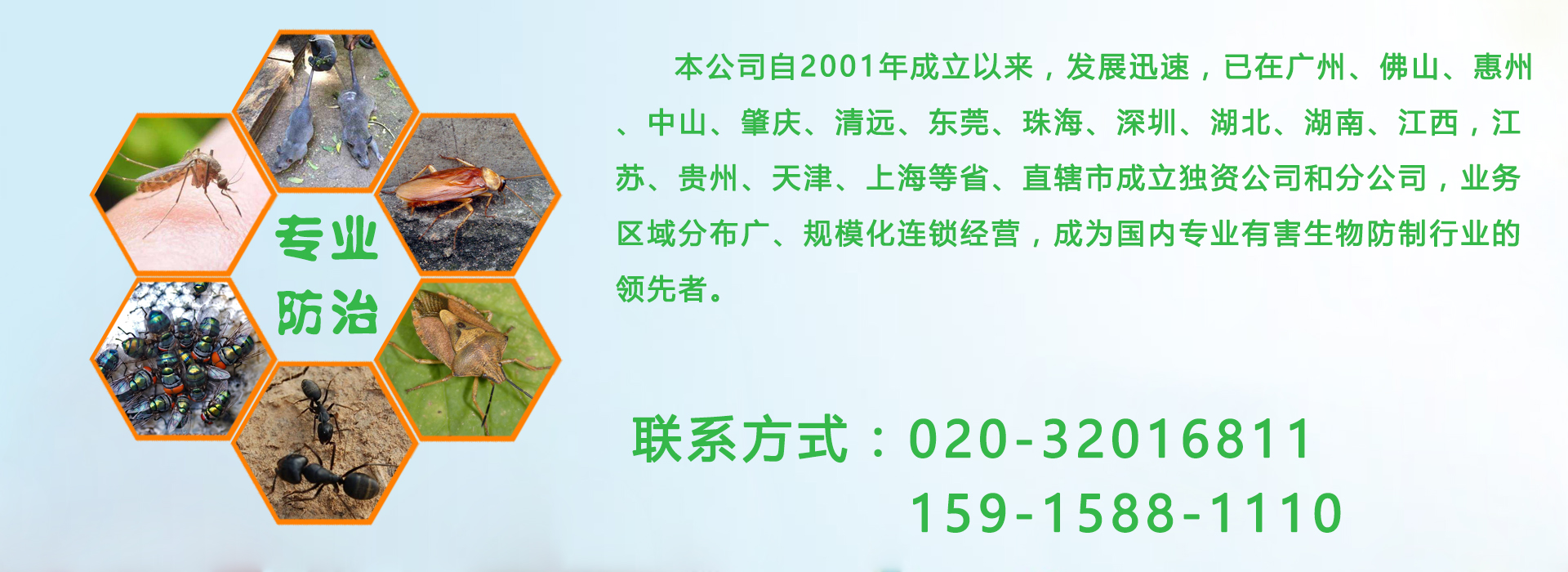 廣州億康環(huán)境科技有限公司專業(yè)從事有害生物防制、空氣治理、增香除味、清洗保潔、衛(wèi)生防疫消毒。本公司自成立以來,發(fā)展迅速,業(yè)務(wù)區(qū)域分布廣、規(guī)模化連鎖經(jīng)營,成為國內(nèi)專業(yè)有害生物防制行業(yè)的領(lǐng)先者。